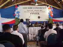 I have breakfast with my usual table-mates. It's a sunny day with little wind that brings out the local insects in force. In particular, bees are industriously investigating every table, looking for sweets. We have to keep the sugar and preserves covered, and the staff diligently clear tables of used plates. I attend the morning session in the air-conditioned room, taking a seat directly in front of the cooling vent. Ah, what comfort, but sitting and listening to technical and regulatory issues regarding mobile communications isn't getting my mission accomplished, so I leave at the break to spread the WILMA message. A German who's spent time doing charitable work in Tanzania takes particular interest in our strategy, and I spend considerable time describing our work in detail and getting some advice in return. He strongly cautions with Yoda-like sagacity, "don't just send money and materials without control. You must have control!" I assure him that we're not in the business of simply handing out resources, although we don't make a point of underlining the control element. At lunch and throughout the afternoon I find other kindred spirits, people who in one way or another have been involved in developmental work in Africa or other parts of the world. It seems they have as little interest in mobile phone regulations as I, and they're all looking for someone to talk with as the official session continues. By dinnertime, the number of cards exchanged or given (not everyone keeps theirs always at the ready as I do) has risen to 41, and I'm looking forward to receiving word from many of my new contacts soon via e-mail. My voice is strained from a solid day of talking, so I dine alone and listen to the local band that's come to play by the pool, then turn in early. |