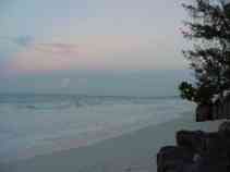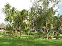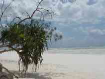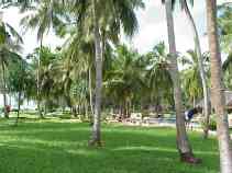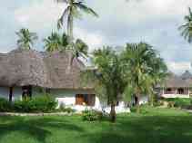 It's a busy morning as Paul and I try to get some key tasks completed before I leave Dar es Salaam. The long arm of Murphy's Law reaches even here: when we arrive at our favorite internet cafe, several machines are malfunctioning, and then the internet connection fails. One of the staff suggests we wait, but this is not a good day for waiting. We go to an internet cafe only a short walk away. It's usually reliable, but we rarely use it because it has twelve computers packed into a small space that perhaps could comfortably hold four. The machine are arranged in two rows along the wall of a narrow room, perhaps once a closet, so that the users sit back-to-back. They sit so close that the staff have removed the backs of half the chairs to make room for the users. There's no chance that Paul and I can sit together at one screen, so he waits outside while I work. I attend to my e-mail, but the computer has been configured to prevent FTP access, so I'll still need to go somewhere else to update some webpages. I invite Paul to take over at the keyboard and send a message of his own, then we head back to the hotel. I quickly pack and take the bags I won't need in Zanzibar to Paul's room, then check out, barely meeting the noon deadline to avoid an extra day's charge (OK, OK, I've never known the Sheraton to charge for a minor overstay, but I don't like to test their limits). I still have to find an internet cafe that will let me use FTP, so I head out on foot to the center of town where there are several to choose from. As I leave, I tell Paul that my bags are full of useful items that he's free to use if the need arises. The first internet cafe I try has working FTP access. I update my pages in just a few minutes, then spend the rest of the half-hour I've paid for on news and financial sites. I return to the hotel and, having no room of my own there, go to Paul's to relax for about an hour before I take a taxi to the airport. In my absence, a need has arisen for one of the items in my bags: my jumbo box of Pepperidge Farm Goldfish crackers. I tell Paul that he's welcome to all of them; I brought them along in case I needed a salty snack to deal with the heat, but I'm doing just fine with the hotel food. I take a taxi to the airport, check in, and wait for my flight. A construction crew is working on the business class lounge with various glues and solvents. The fumes drive me to the smoking area, where thankfully nobody is smoking. When the gate opens, the other passengers and I walk to our small twin-engine propellor plane, and when the captain sees me he advises, "sit up front for balance." As I always do on a small plane, I sit up front. The flight is smooth and uneventful, although uncomfortably warm. We only climb to 3,500 feet, not high enough to benefit from lower upper-atmosphere temperatures. Twenty minutes after takeoff from Dar we're on the ground in Zanzibar. Representatives from Zantel, the sponsor of the GSM conference I'm attending, are here to greet me and other invitees, and they wisk us to the VIP lounge where I go through the passport and customs processes in a manner that must be familiar to royalty: there's an attendant to collect my luggage and get my passport and landing card stamped while another brings me drinks. The soft leather couch and air conditioning are certainly an improvement over my experience arriving by boat on a previous trip! I and three other invitees pile into a luxurious van and begin the trek to the Blue Bay Beach Resort. We all know that the resort is quite a distance from the airport (and even farther from the docks where some invitees will be picked up), but as the sun sets and we still seem to be miles from anywhere, we all begin to wonder just how far one can go and still be on Zanzibar. I didn't time the drive, but I believe that it lasted more than an hour. Eventually we arrive at the resort. There aren't many lights on this side (northwest edge) of the island, so we emerge into the dim illumination coming from the main building. Also, our very comfortable van has excellent air conditioning, so my cold glasses fog over immediately when they contact the warm, humid air. As I blindly step out, I put my foot on something that's obviously not pavement, but it take me a few seconds to realize what it is: the foot of a Masai warrior. He works for the resort, and I trust he has explicit instructions not to kill guests - at least not before they've paid - so he graciously accepts my apology and sees that my luggage is brought inside. The check-in process include a lecture about the grounds and the unusual electrical system here (you need to use your key to turn on your room's power), but it's brief, and I'm soon in my room and unpacked. I discover another oddity about the resort's power system: the sockets here are not the three-flat-prong type used in the United Kingdom but the two-round-prong type used in other parts of Europe. I've grown accustomed to seeing only the flat-prong sockets in east Africa, including the west side of Zanzibar, so I've only packed a flat-prong connector for my US equipment. This means that I'll have some trouble recharging my ThinkPad and camera, so I'll may not post any more reports until I return to Dar es Salaam on the 26th. Upon returning to the main building I meet up with my fellow travellers from the van, and we make a foursome for dinner. Tonight's special is a seafood buffet - there's no other menu - and while the selection is smaller than at other buffets I've sampled on my travels, what they have is mostly quite good. My only complaint is that the jumbo crab claws have been prepared with an assortment of spices strong enough to completely obscure the taste of the crab. Dinner conversation reveals my companions to be a young couple from Florida combining a second honeymoon with a business trip (their first honeymoon was also in Zanzibar, which is where the husband was born), and the president of a west African mo