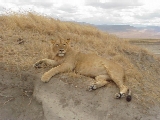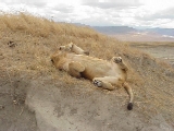There's little shade in the middle of the crater, so the lions take advantage of any cool space. |