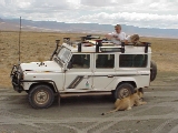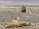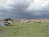 A cluster of tour vehicles provides some security from the wildlife during our picnic lunch, but one never knows who will come to see what's on the menu. |