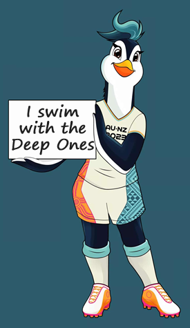 The indigenous names of the stadium locations may also seem strange to fans from foreign lands. Sportscasters from outside the region will probably need some time to perfect their pronunciations of names such as Tōmaki Makaurau, Te Whanganui-a-tara, and Kirikiriroa. The novel vocabulary required for this tournament, together with the story of the mascot (which never states that the mutant/alien Tazuni didn't eat the children), sounded a bit Lovecraftian to the crack contest staff of Laughton.org. This has led us to stir some eldritch ingredients into the formula for this competition, beginning with conjuring up a squad of carnivorous soccer balls to accompany Tazuni onto the field (they're purely decorative and have no influence on this contest).